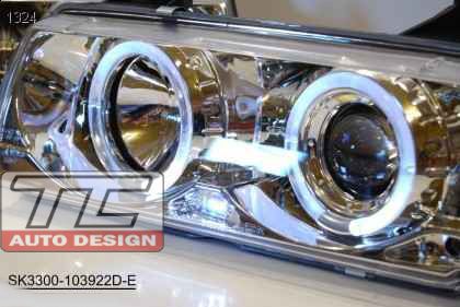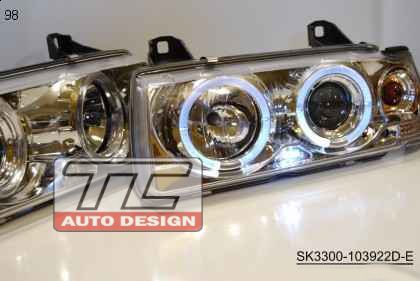 reflektory BMW E36 2D 1992-1998, Chrom, AngelEyes, RINGI