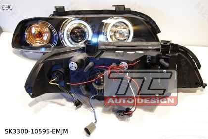 Lampy Przednie BMW E39 "5" 1995-2003, Czarne / Angel Eyes / Ringi